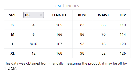 - Bust: 86cm / 33.9" Waist: 62cm / 24.5" Hips: 96cm / 37.8"